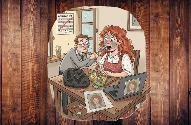Wiersz powstał z przypadkowo rzuconych słów: fotografia, koloratura, pióro, lawa, stetoskop, przyjemność, plastik, kalka, landrynka.